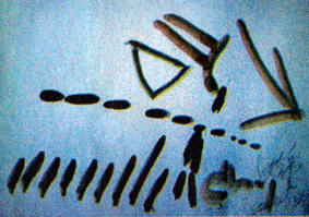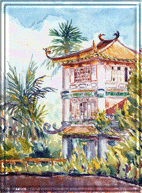 蔡洪钟的其中一幅抽象画。 | 蔡洪钟早期的水彩画:古晋青年社。 | |