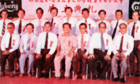 天猛公拿督陈明聪的全家福,四名子女都受过高等教育。 | 第一省华小董联会成立时,和首届执委合影。 | |